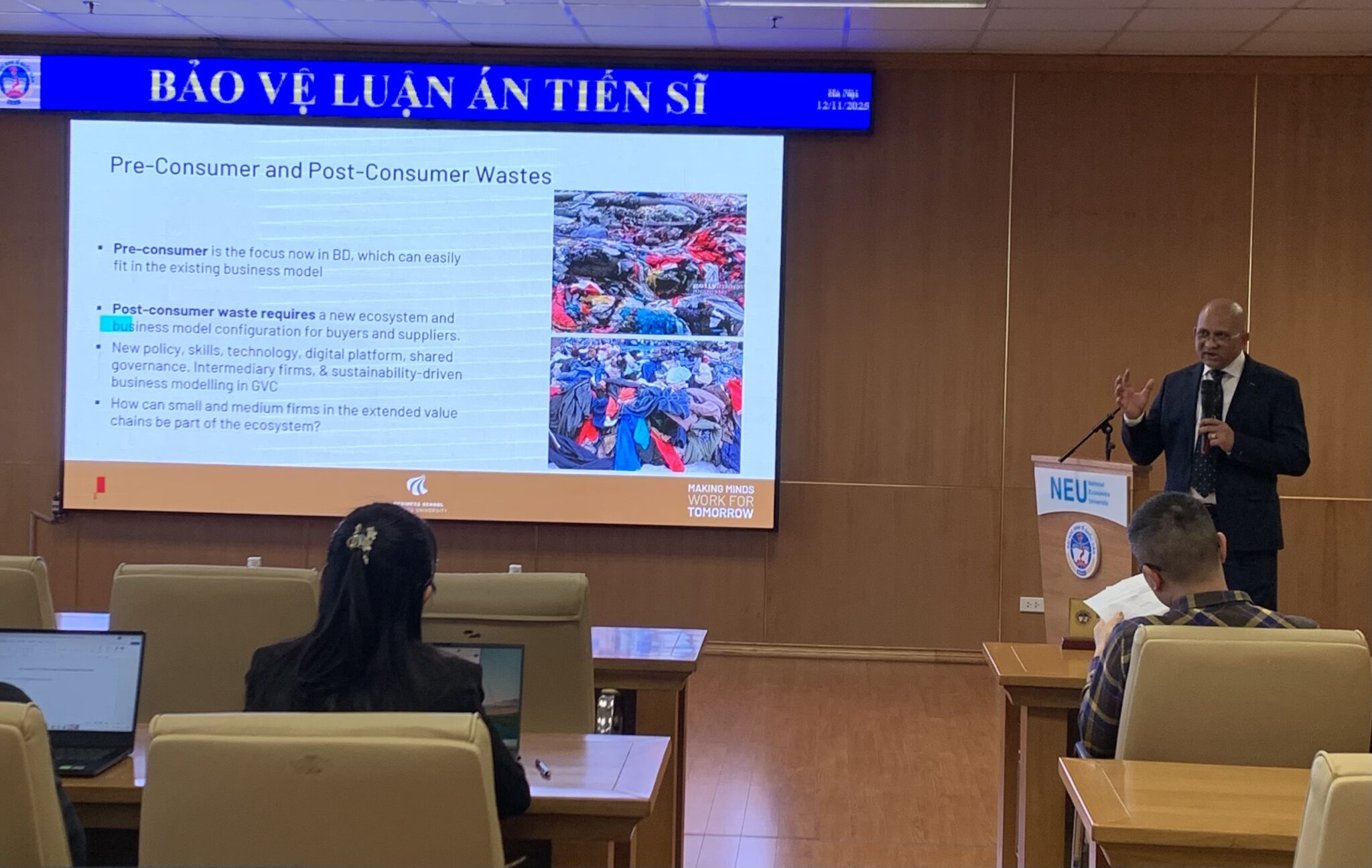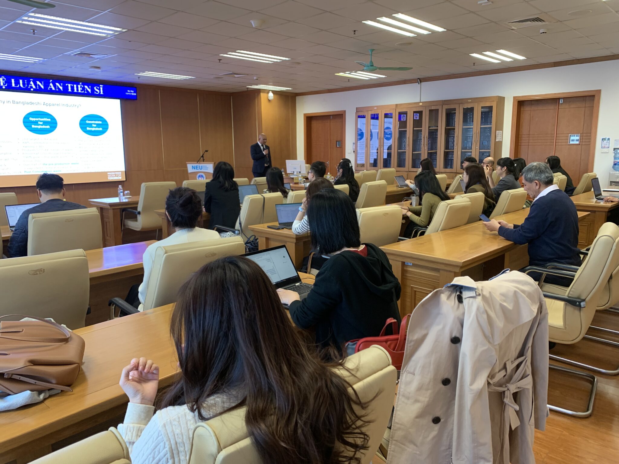 Chiều ngày 25/11/2025, Viện Phát triển bền vững, Đại học Kinh tế Quốc dân, đã tổ chức buổi toạ đàm trong khuôn khổ chuỗi toạ đàm của chương trình Tiến sĩ bằng tiếng Anh với chủ đề “The Emergence of a Circular Economy in the Global Apparel Value Chains: The Role of MNEs in Transnational Social Spaces and Communities”.