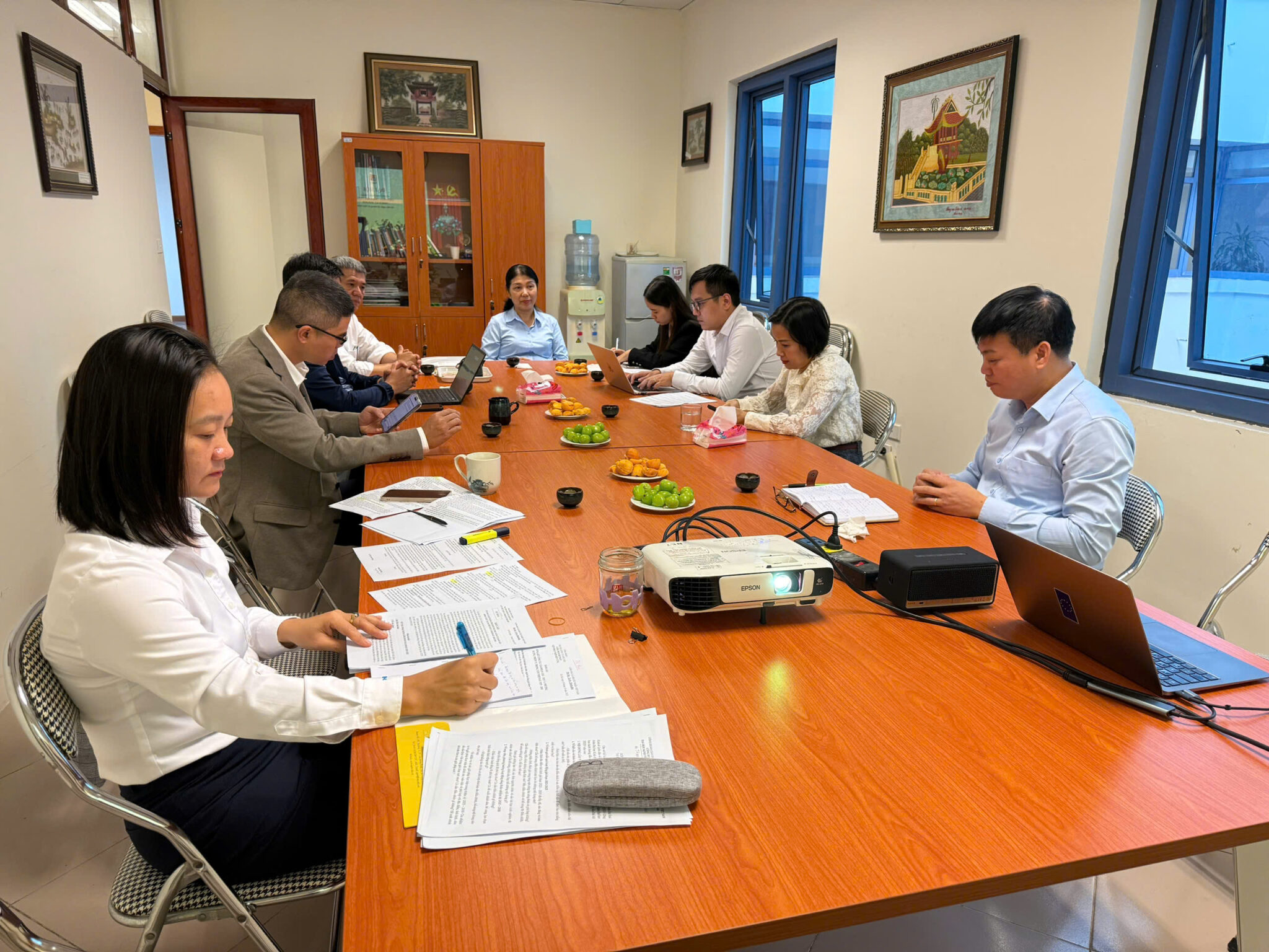 Đ/c Phạm Thị Phương Thuý và Đ/c Lê Đức Hoàng cùng các đoàn viên công đoàn Viện chúc mừng Chủ tịch công đoàn bộ phận Viện PTBV nhiệm kỳ 2025-2030