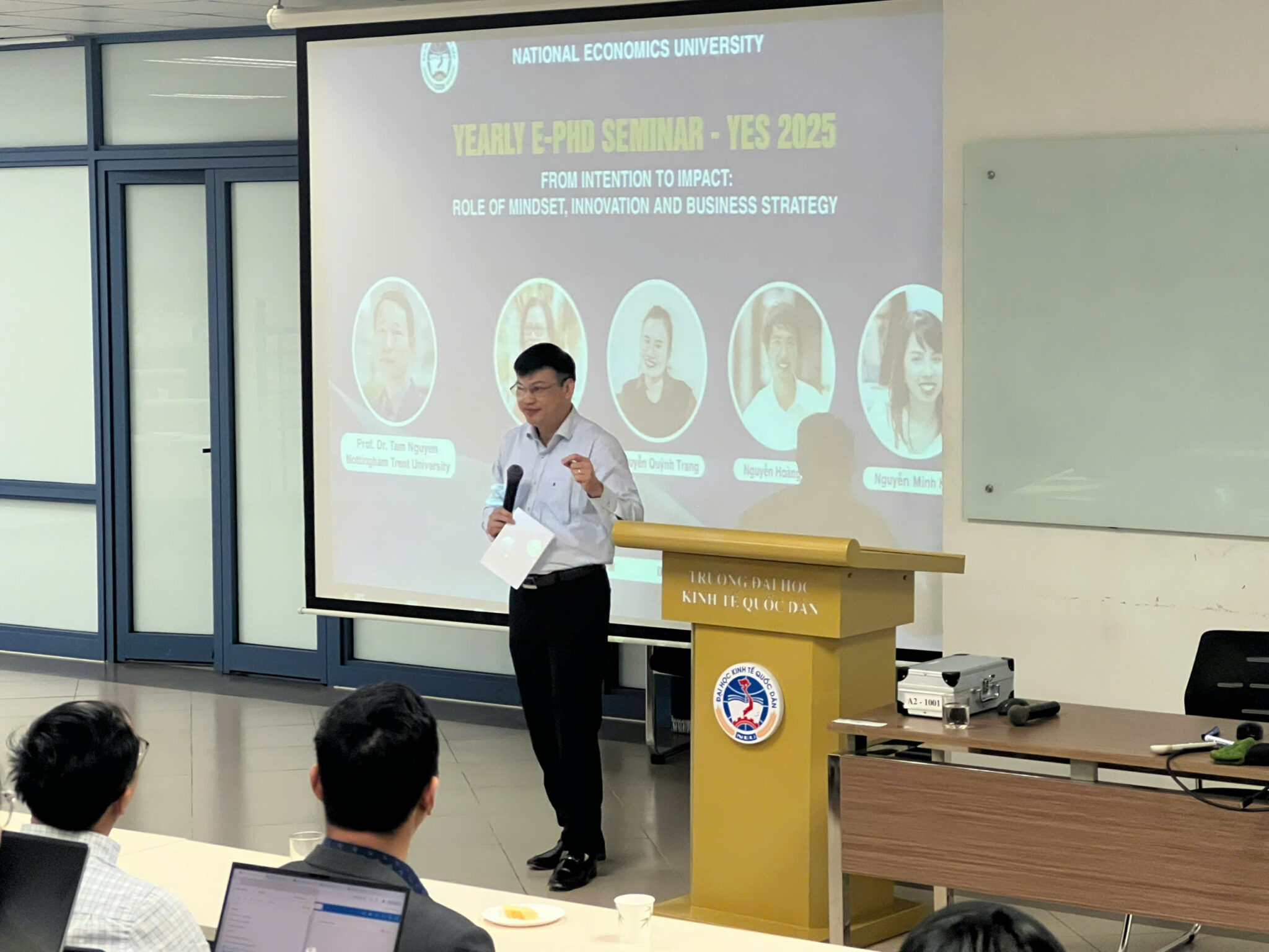 Sau 8 năm triển khai, chương trình E-PhD đã có 20 NCS đã bảo vệ thành công luận án tiến sĩ; 58 NCS đang theo học; và 42 bài báo của NCS đã được đăng trên các tạp chí quốc tế uy tín thuộc hệ thống WOS/Scopus. Nhiều bản thảo khác cũng đang trong quá trình phản biện. Toạ đàm hôm nay là dịp quý báu để các NCS trình bày kết quả nghiên cứu, nhận góp ý từ thầy cô và chuyên gia để hoàn thiện hơn công trình của mình. Đồng thời, đây cũng là cơ hội thể hiện chất lượng và khẳng định cam kết hội nhập học thuật quốc tế của NEU”.