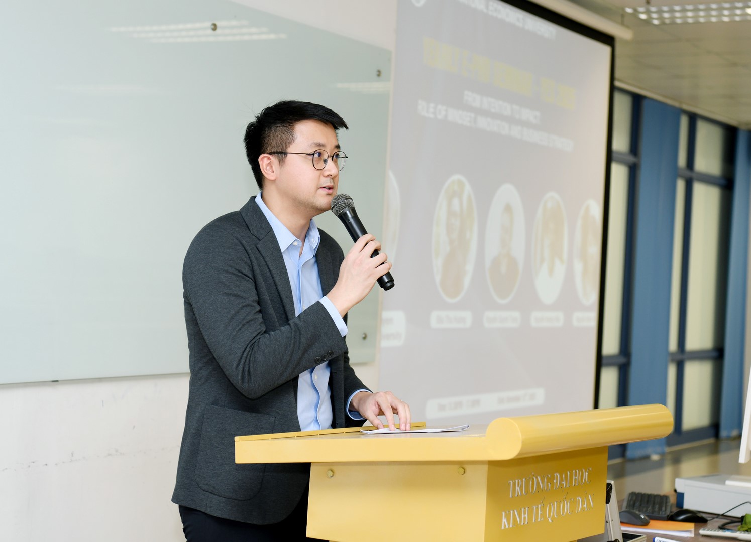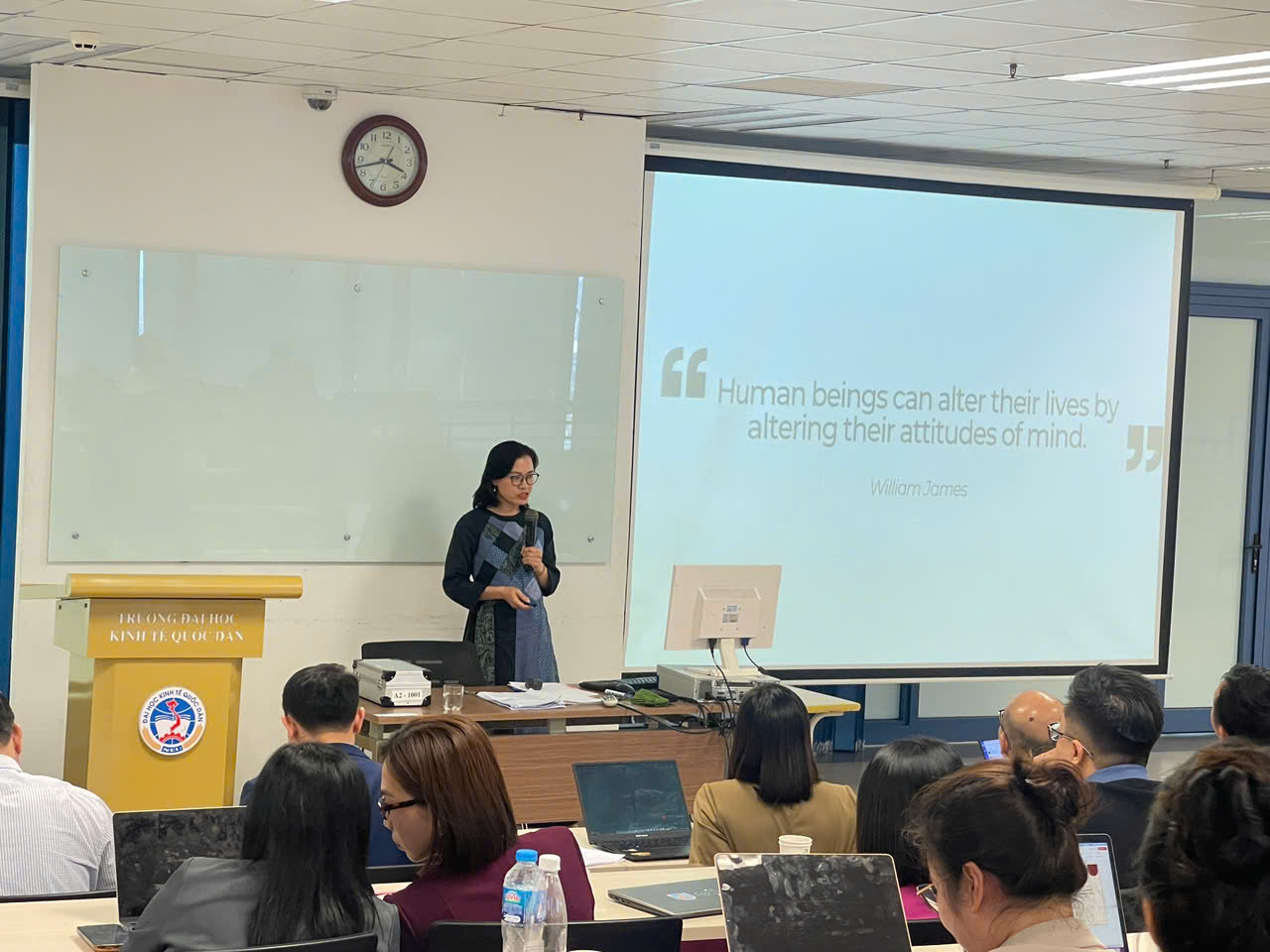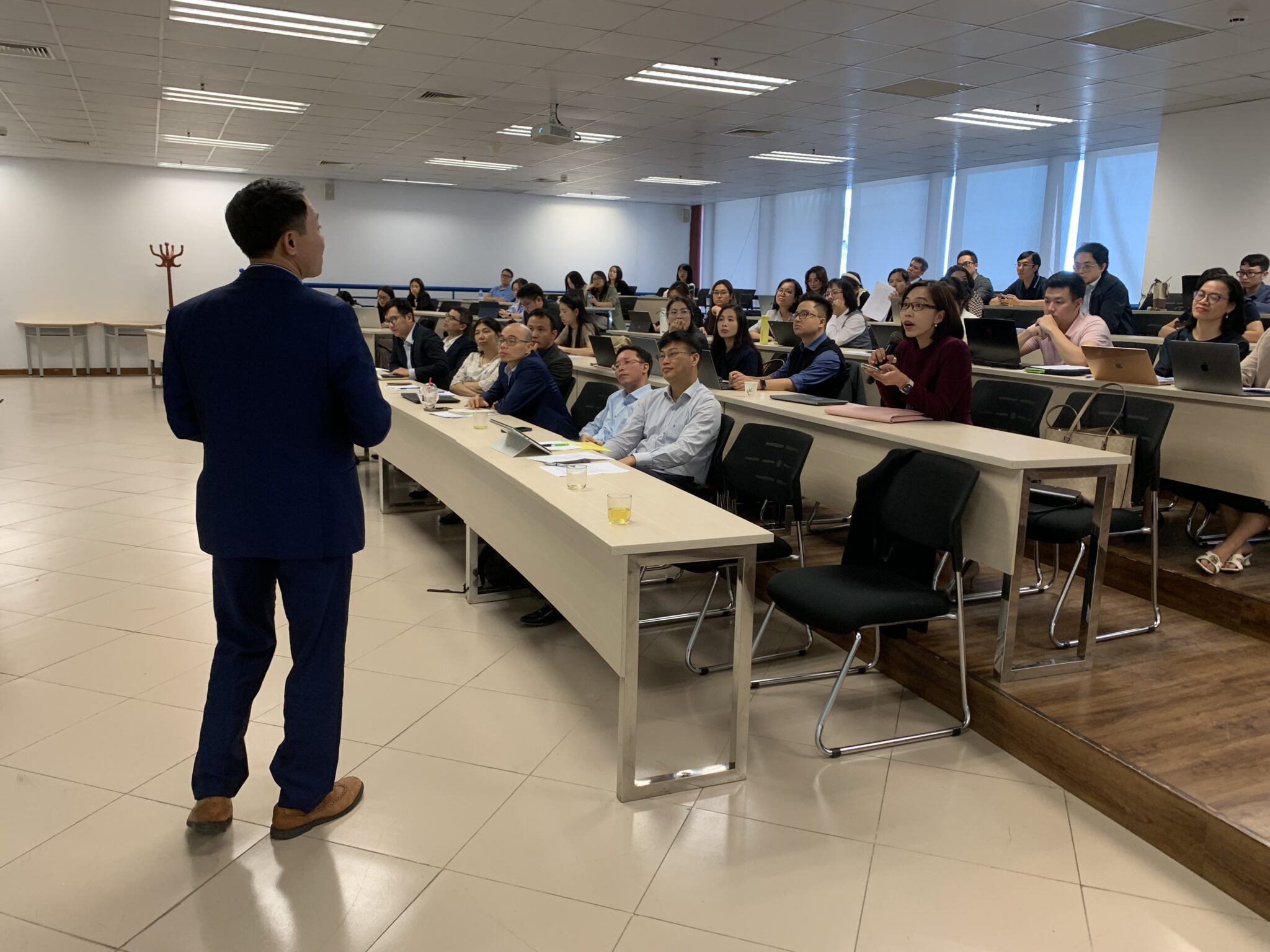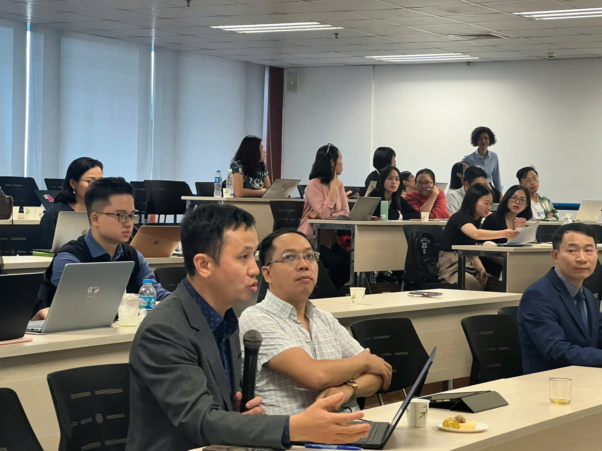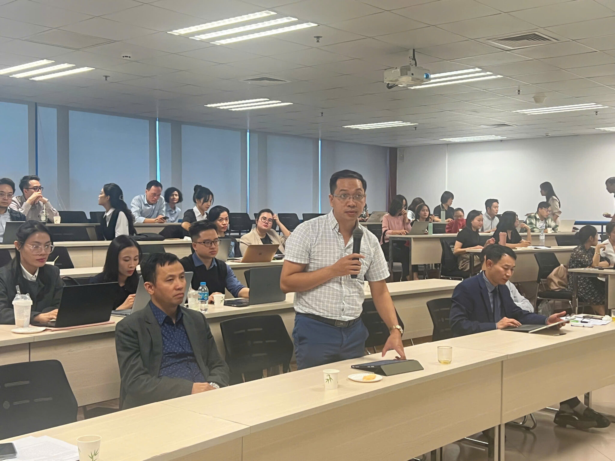 Trong phần báo cáo chính, GS.TS. Tam Nguyen đến từ Trường Kinh doanh Nottingham, Đại học Nottingham Trent (Vương quốc Anh) đã trình bày tham luận với chủ đề “Reshuffle Business Strategies in Response to Natural Disasters”. Dưới sự điều phối của PGS.TS. Bạch Ngọc Thắng (NEU), bài trình bày mang đến những phân tích sâu sắc về khả năng tái cấu trúc chiến lược kinh doanh trong bối cảnh thiên tai, biến đổi khí hậu và những thách thức toàn cầu.