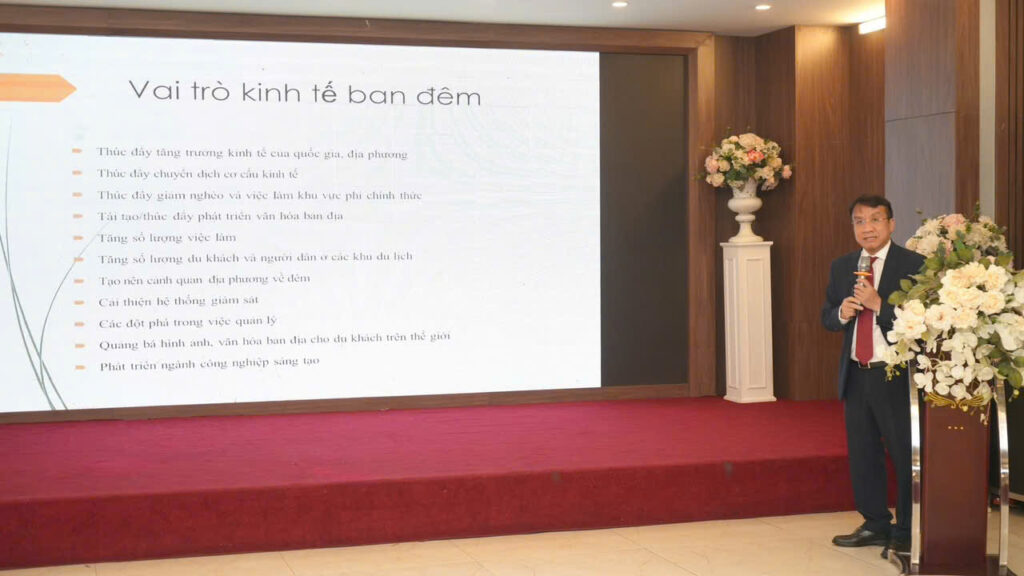 Phát biểu tại hội thảo, Phó Hiệu trưởng Trường Kinh tế và Quản lý Công, PGS.TS Nguyễn Ngọc Sơn nhấn mạnh: “Kinh tế đêm không đơn thuần là kéo dài thời gian kinh doanh, mà còn là một chiến lược phát triển kinh tế hiện đại, gia tăng giá trị cho ngành du lịch và dịch vụ. Các thành phố trên thế giới đã tận dụng tốt mô hình này để nâng cao thu nhập, thúc đẩy đời sống kinh tế và phát triển đô thị bền vững”.