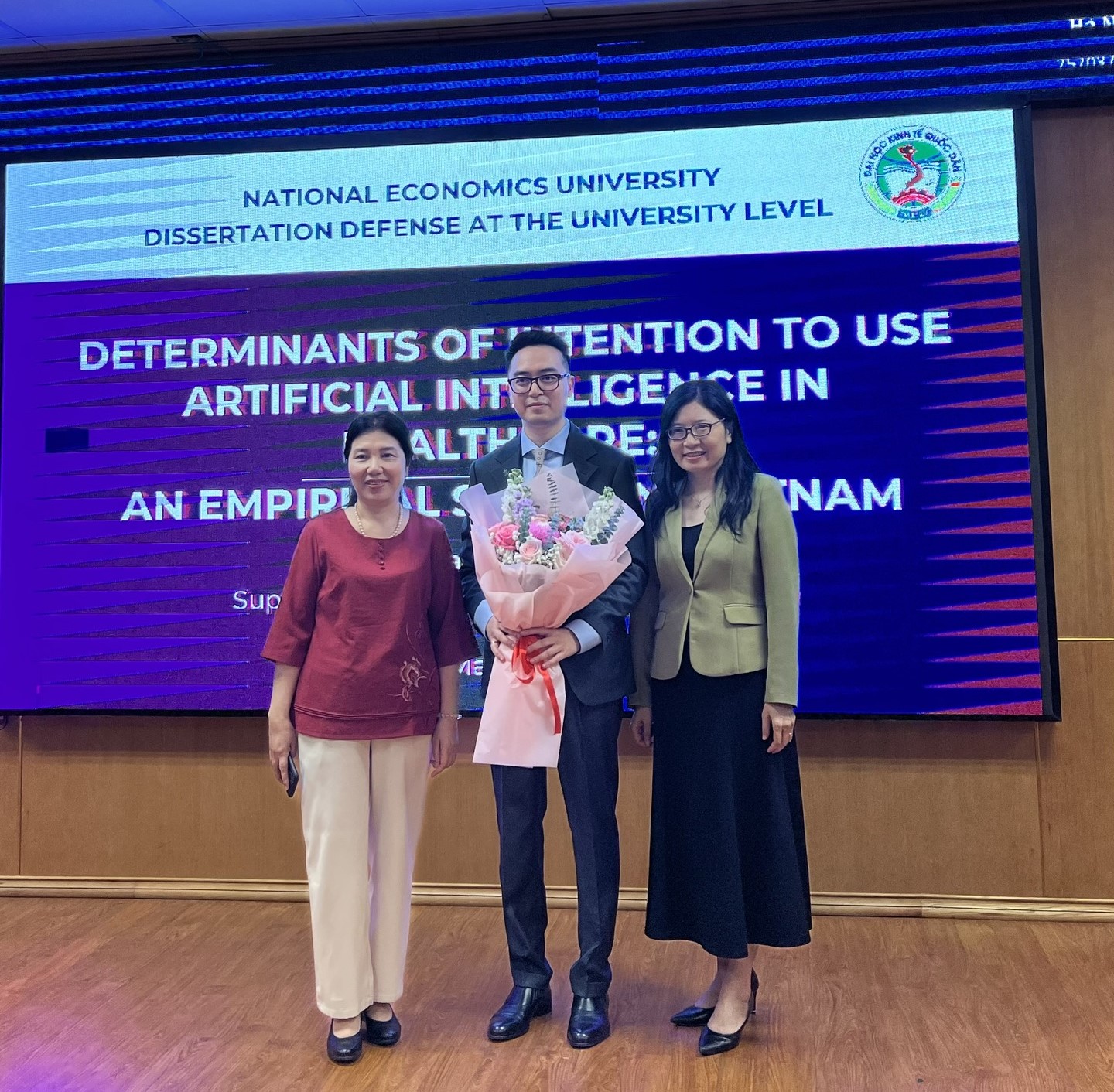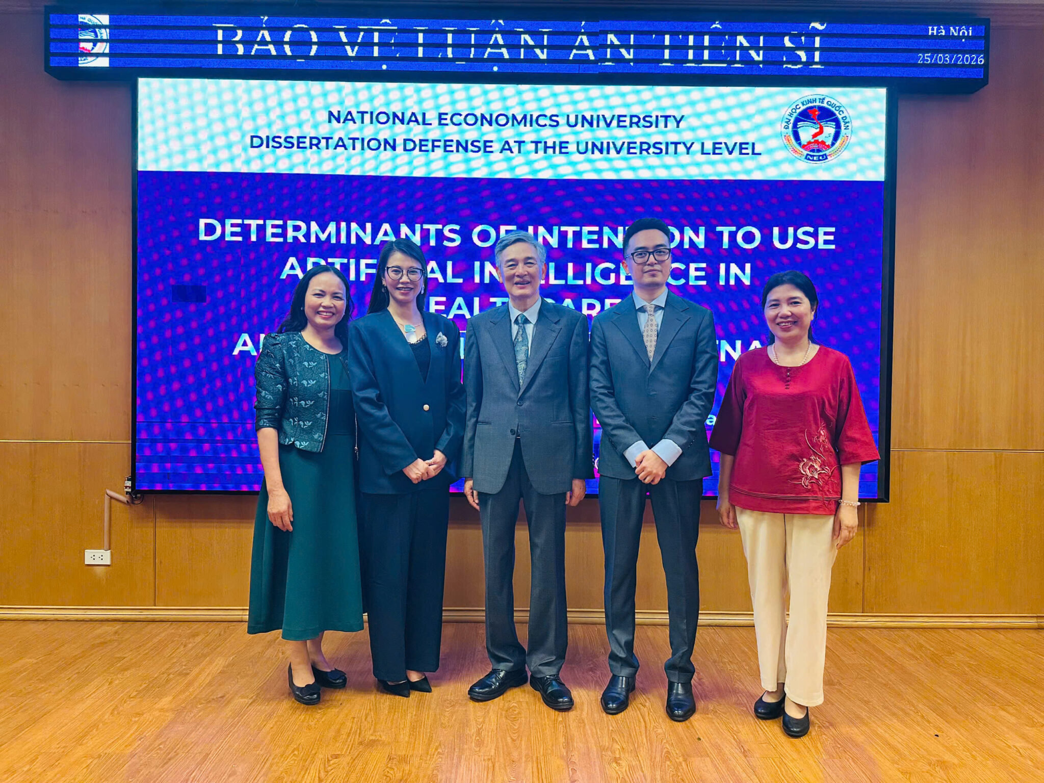 Chiều 25/03/2026, nghiên cứu sinh Đào Minh Hoàng, chuyên ngành Quản trị kinh doanh (E-PhD) đã bảo vệ thành công Luận án tiến sĩ với đề tài: “Determinants of intention to use artificial intelligence in healthcare: An empirical study in Vietnam”. Luận án tiến sỹ được hướng dẫn khoa học bởi GS.TS. Nguyễn Thị Tuyết Mai – Đại học Kinh tế Quốc dân.