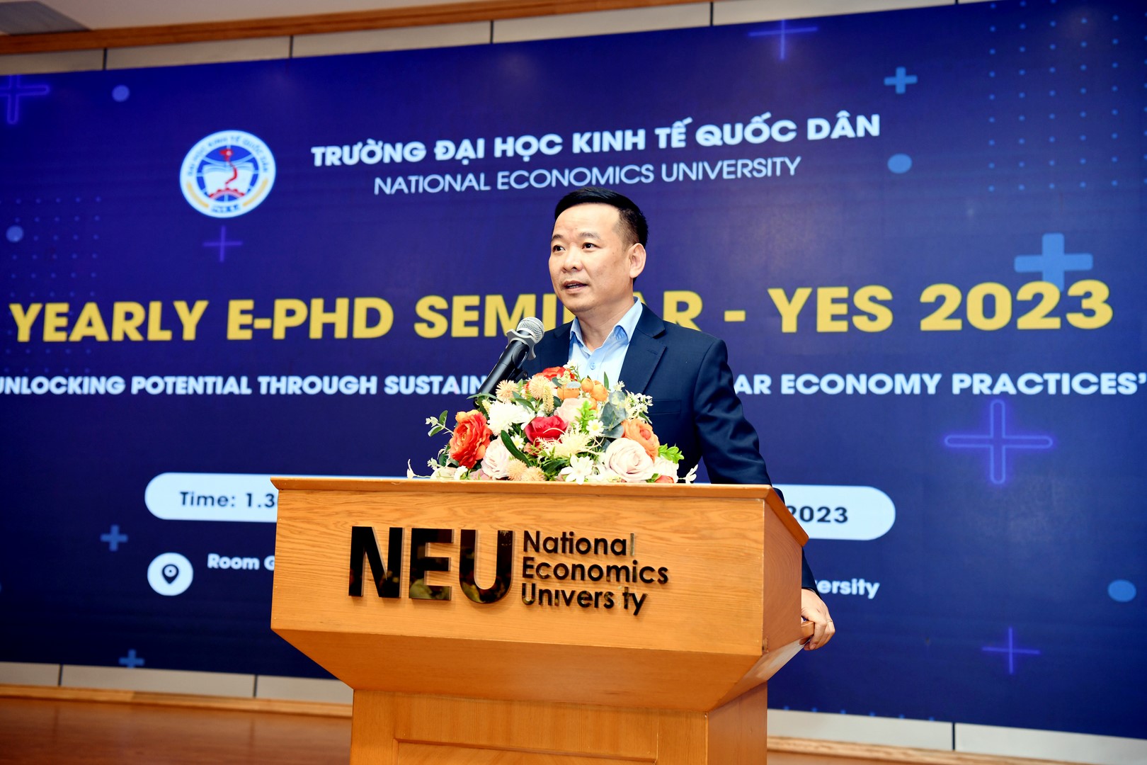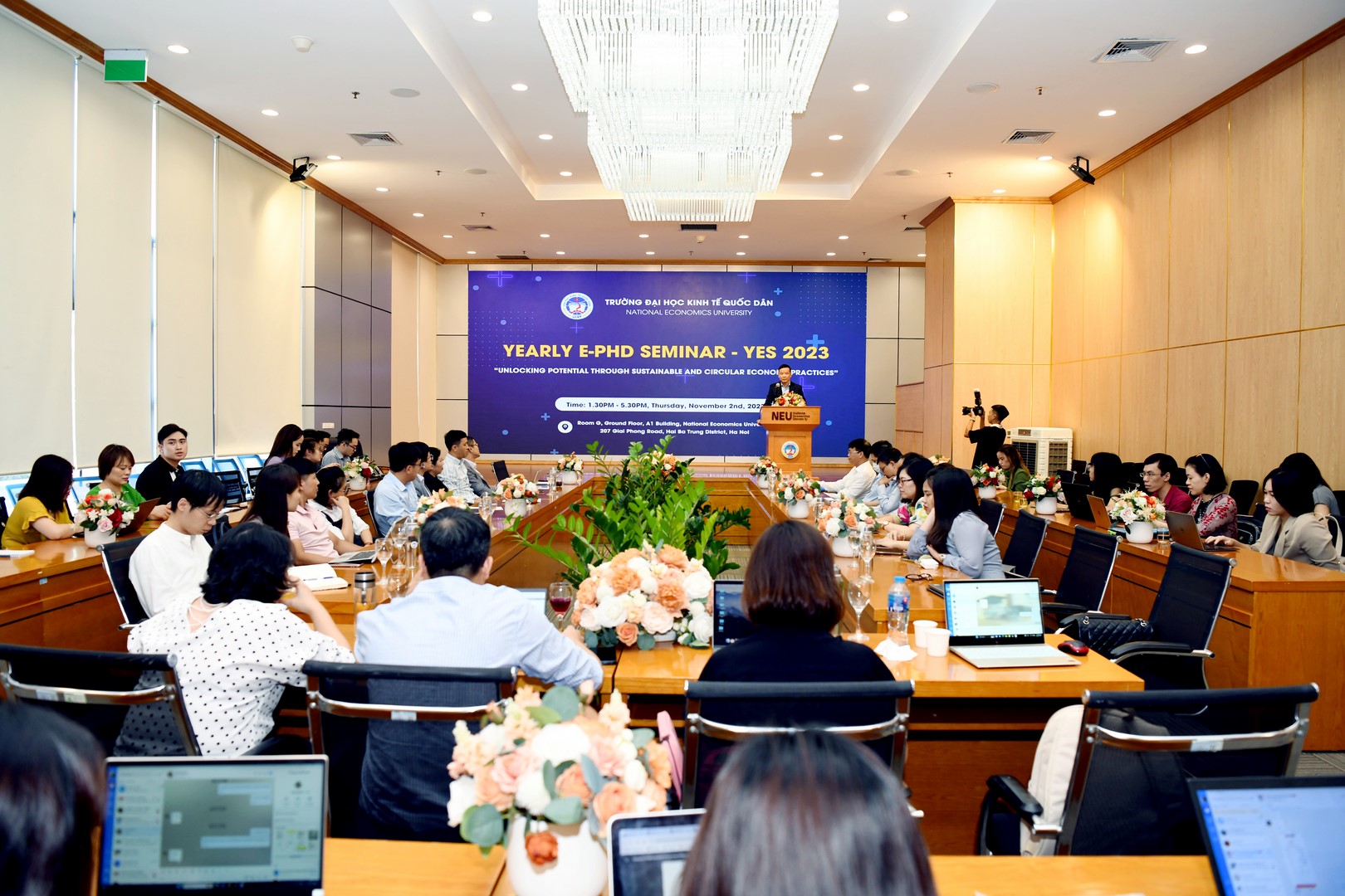 Ngày 2/11/2023, Ban chuyên môn Chương trình đào tạo tiến sĩ bằng Tiếng Anh (E-PHD) và Viện Phát triển bền vững – Trường Đại học Kinh tế Quốc dân (NEU) đã tổ chức Tọa đàm khoa học thường niên “Yearly E-PhD Seminar” – YES 2023 với chủ đề Khai phóng tiềm năng thông qua Thực hành Bền vững và Kinh tế tuần hoàn – Unlocking Potential Through Sustainable And Circular Economy Practices